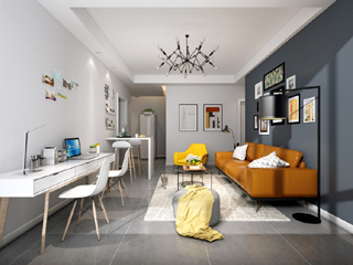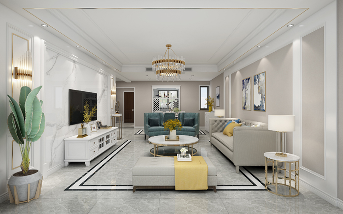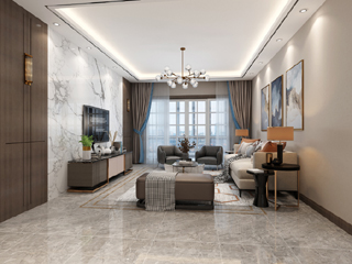 传统与时尚结合,用低饱和度色系的软装,搭配饱和度较高的柚木色...