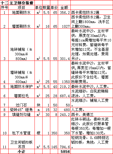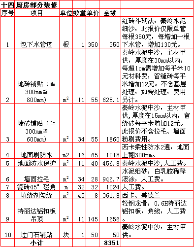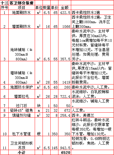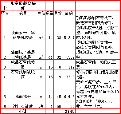 | 2018年西安270平米装修报价表 |