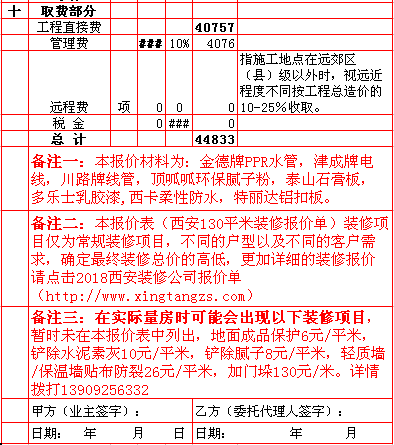 | 2018年西安130平米装修报价表 |