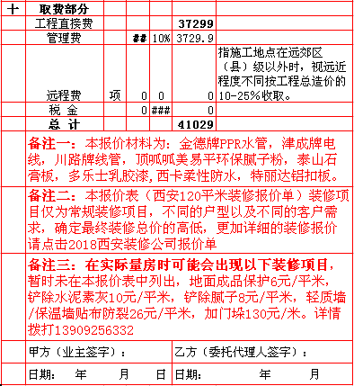 | 2018年西安120平米装修报价表 |