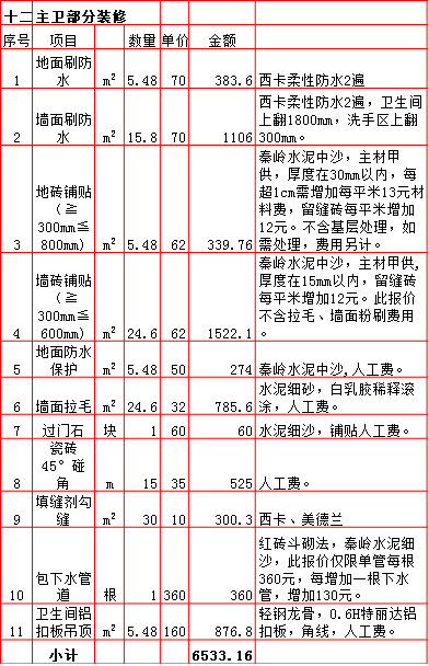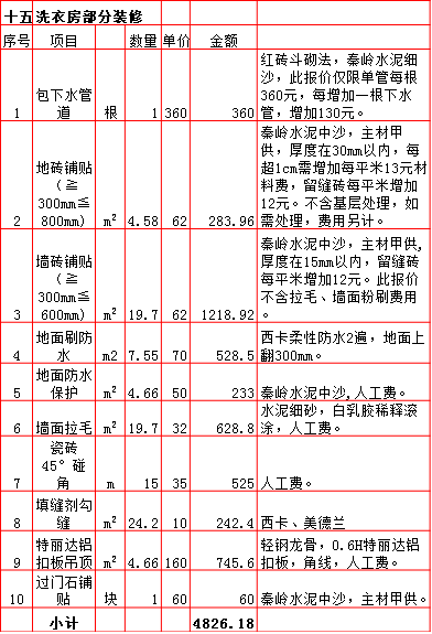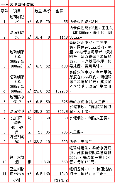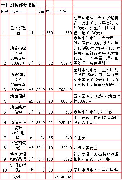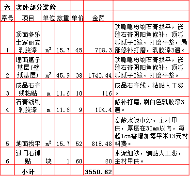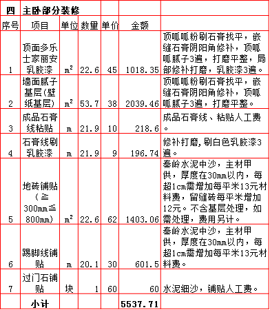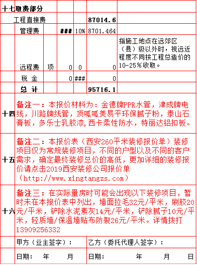 | 2019年西安260平米半包装修预算费用报价表 |