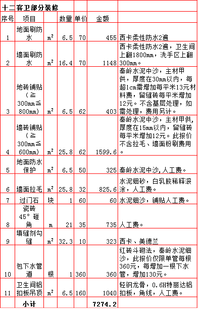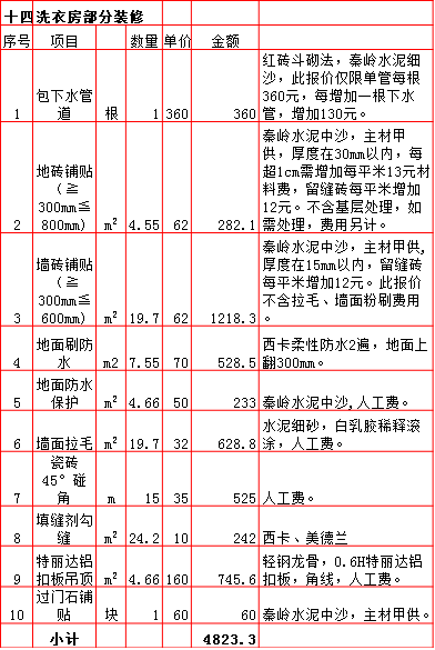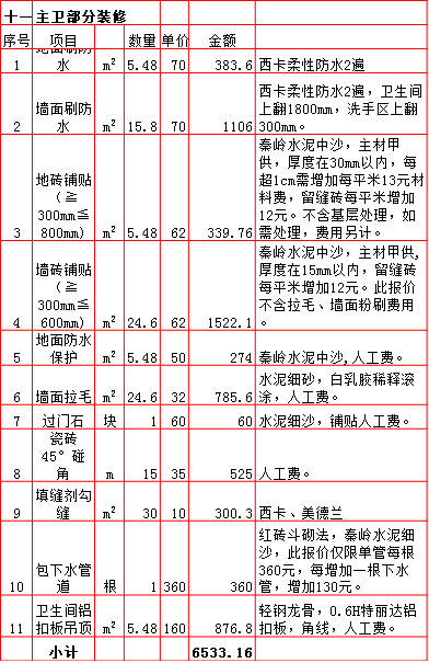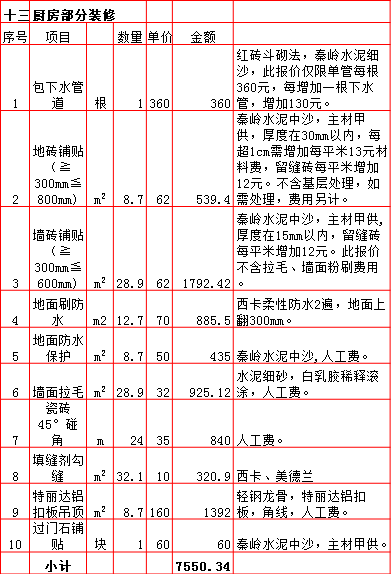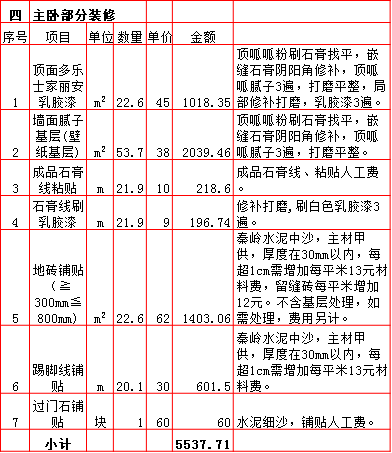2019年西安250平米半包装修预算费用报价表