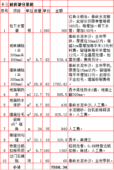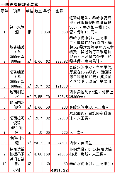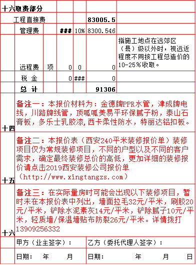 | 2019年西安240平米半包装修预算费用报价表 |