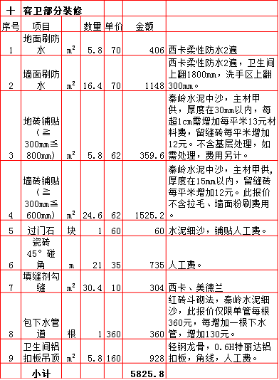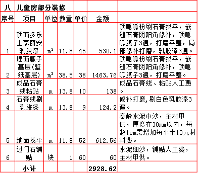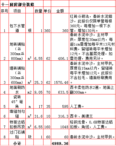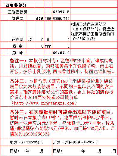 | 2019年西安180平米半包装修预算费用报价表 |