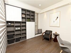 一楼规划前半部份为书房,中央区是客厅,接着是楼梯,后半区域为餐厅、厨房,二楼为私密休憩空间、三楼则设有孩房及佛堂,让每个空间皆能格局方正。而在柜体选用上,设计师运用大量系统柜,为客户量身订作,搭配木作,又符合经济效益;无论是深色或浅色,特别挑过的木质纹理自然朴质,没有一丝匠气,很能呈现北欧风的休閒感觉,又可以收纳储藏,机能与美感兼备,成就年轻人的梦想之家。
