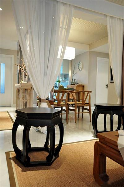 新中式风格非常讲究住宅的细节装饰,尤其是在面积较小的住宅中,往往可以达到"移步就变景"的装饰效果。即使采用了"新中式"来做住宅的整体风格,主人们也会在空间中摆放大量的装饰品。这些装饰品包括数量繁多的绿色植物、布艺、装饰画以及不同样式的灯具等。这些装饰品可以来自世界各地,但空间的主体装饰物还是中国画、宫灯和紫砂陶等中国传统装饰物。这些中式装饰物的数量不在多,但在空间中起到了画龙点睛的作用。