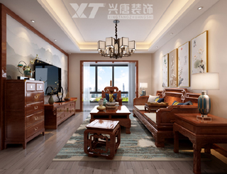 传统与时尚结合,用低饱和度色系的软装,搭配饱和度较高的柚木色,色彩上缓和了灰色地面和白色墙面的苍白感,确也不显艳俗,形成冷暖与材质上的对比。